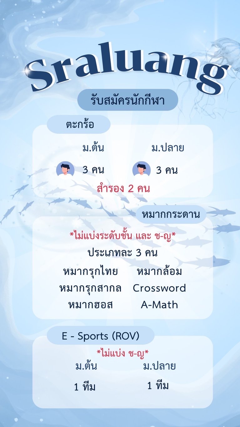 รับสมัครนักกีฬาประเภทต่างๆ